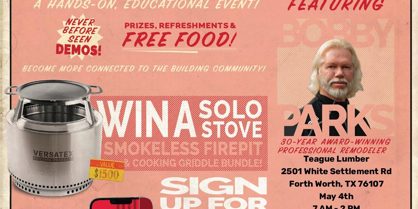 Apr262023Uncategorized Category: UncategorizedBy sgilleyApril 26, 2023Tags: teague lumberVERSATEX Share this post TweetShare on Twitter Pin itShare on Pinterest Share on FacebookShare on Facebook Share on LinkedInShare on LinkedIn Post navigationPreviousPrevious post:2021 Holiday ScheduleNextNext post:DEMO DAY – APRIL 11, 2024From the Same CategoryFEBRUARY 25th MONTHLY BUILDER EVENT!! 9AM TO 10:30AM (COME & GO) PRESENTED BY: JAMES HARDIEFebruary 10, 2026January 28th Monthly Builder Event!! 9:00am to 10:30am (Come & Go) Presented: Acre by Modern MillJanuary 2, 2026HOLIDAY HOURSDecember 19, 2025December 17th Monthly Builder Event! 9:00am to 10:30am (Come & Go) Presented by HenryDecember 4, 2025Thanksgiving HoursNovember 20, 2025November 19th Monthly Builder Event! 9:00am to 10:30am (Come & Go) Presented by AZEK ExteriorsNovember 6, 2025